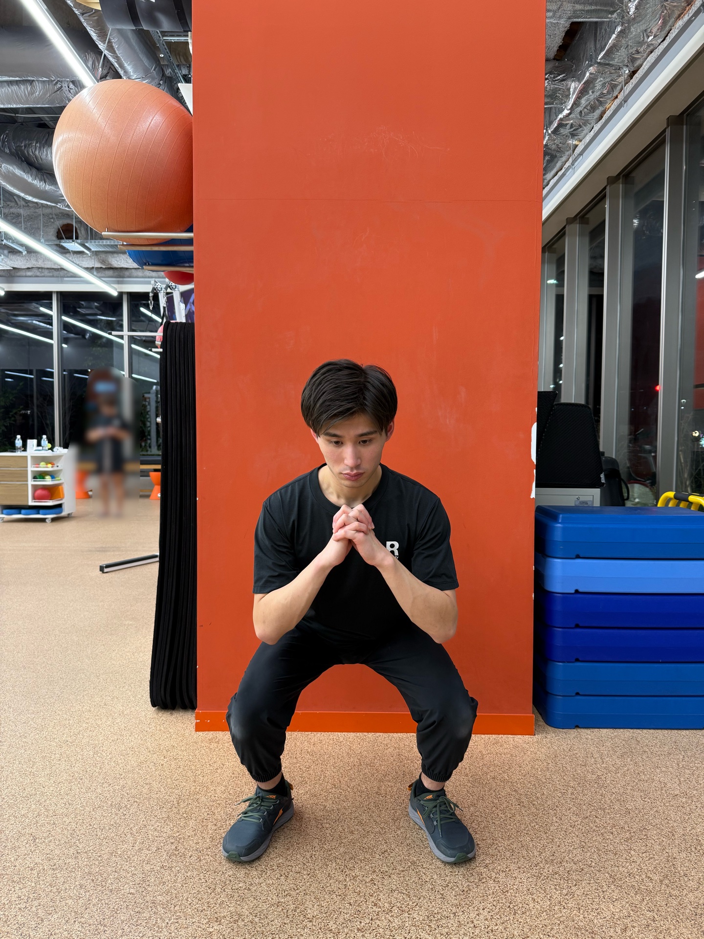 ・背すじを保ったまま、ゆっくりしゃがんで立ち上がる