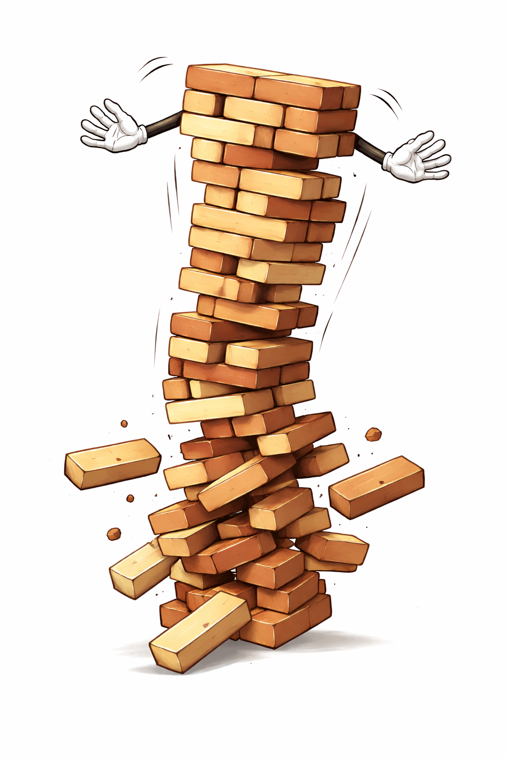 下の方が乱れたジェンガ、上の方がバランスを取り戻そうと調整しますよね?