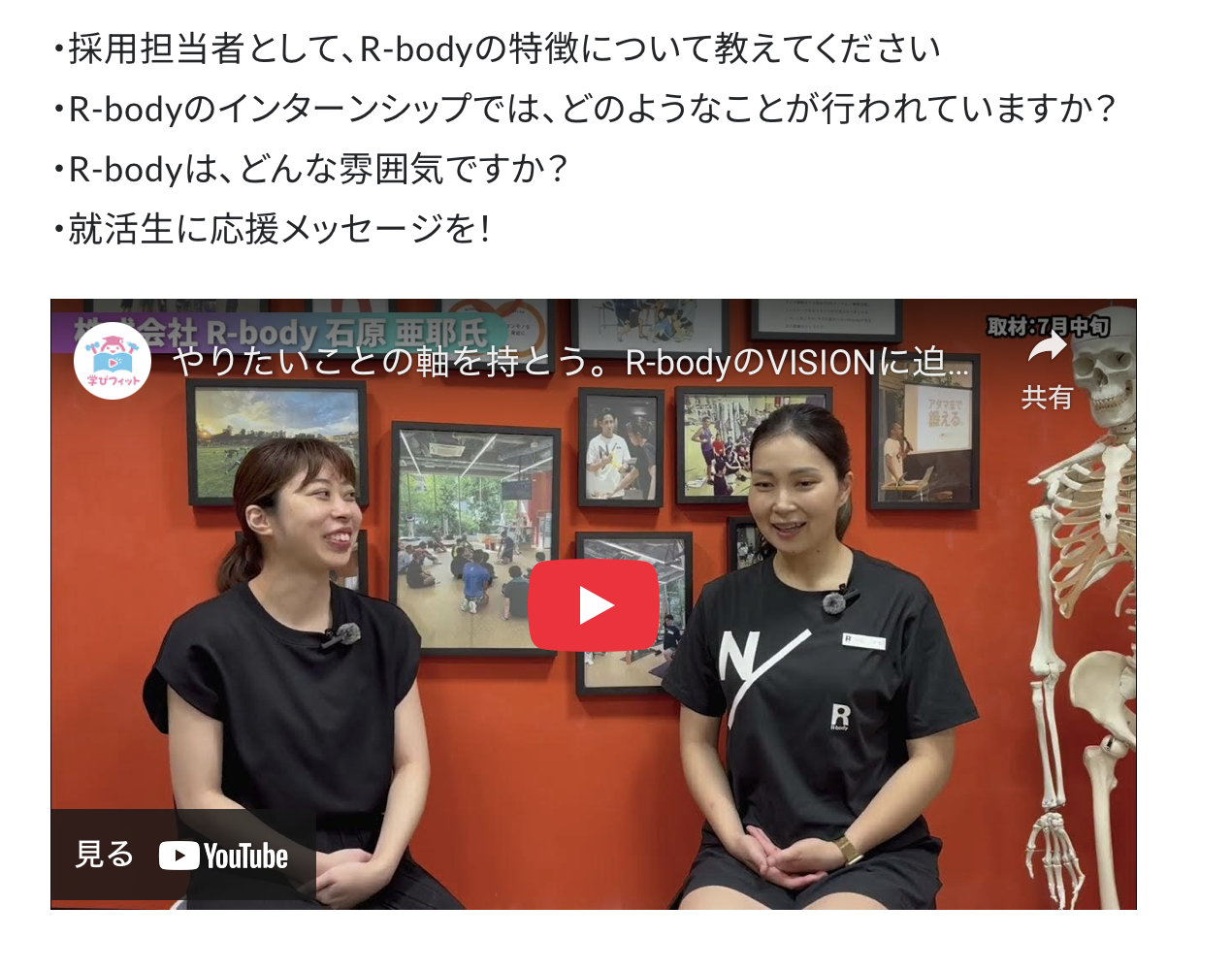 石原はR-bodyでの社歴も長く、採用活動では中核を担い、R-bodyが求める人物像についてお答えさせていただきました。