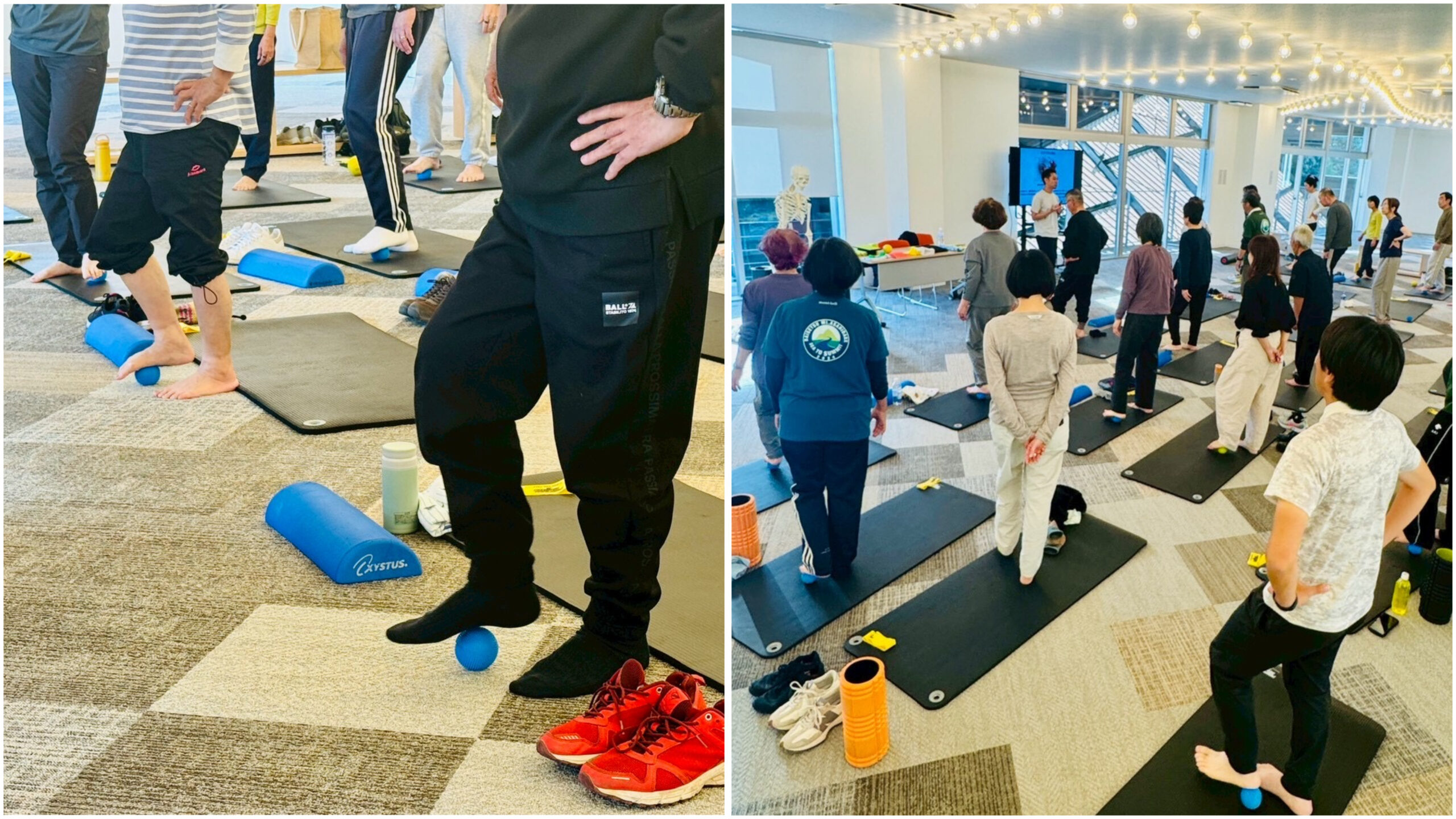 今回の講座では、それらのツールを「日々のカラダづくりにどのように活用できるか?」をテーマに、実際にカラダを動かしながら体験していただきました。